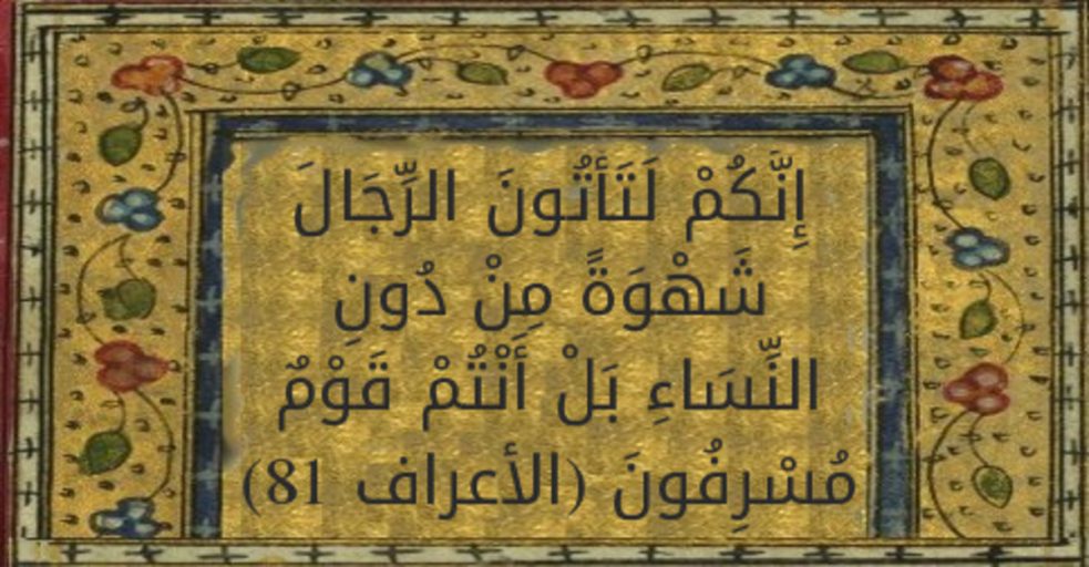 既然你们是男人,就努力表现得像个男人。真主禁止了男人与男人之间的关系,并对做这种事的鲁特民族说了以下的话: